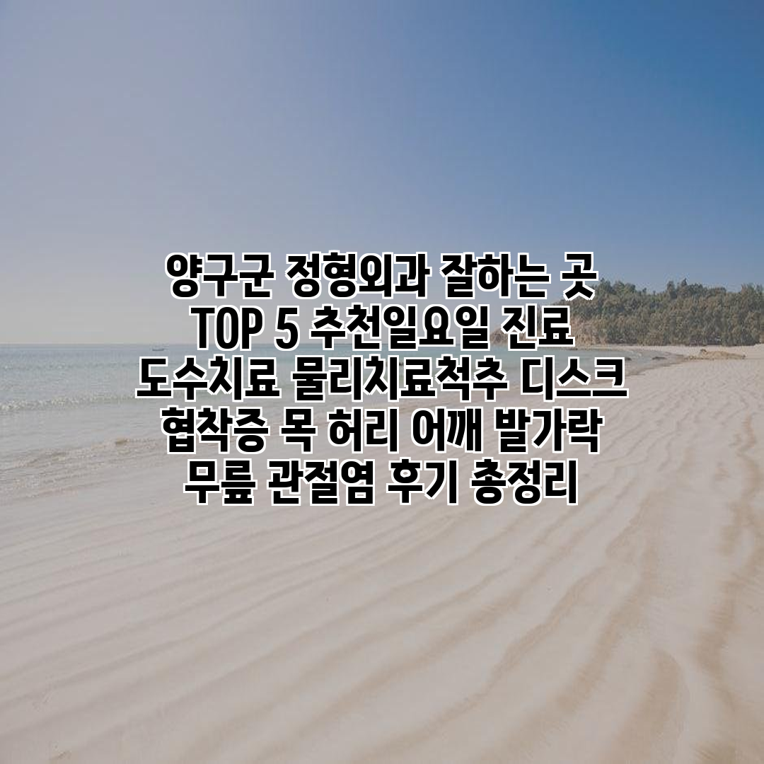 이를 해결하기 위해, 신뢰할 수 있는 정형외과 리뷰 사이트나 블로그를 참고하는 방법이 있습니다. 예를 들어, ‘양구군 정형외과 추천 TOP 5’ 리스트를 통해 평가가 높은 병원과 해당 병원이 제공하는 치료 유형 및 비용에 대한 정보를 쉽게 비교할 수 있습니다.