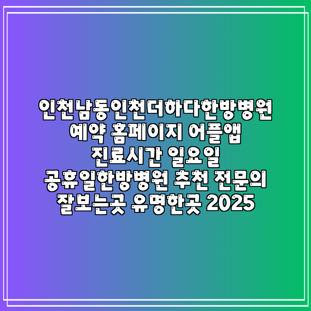 💡 인천 남동구에서 인기 있는 한방병원의 진료시간과 예약 방법을 알아보세요. 💡