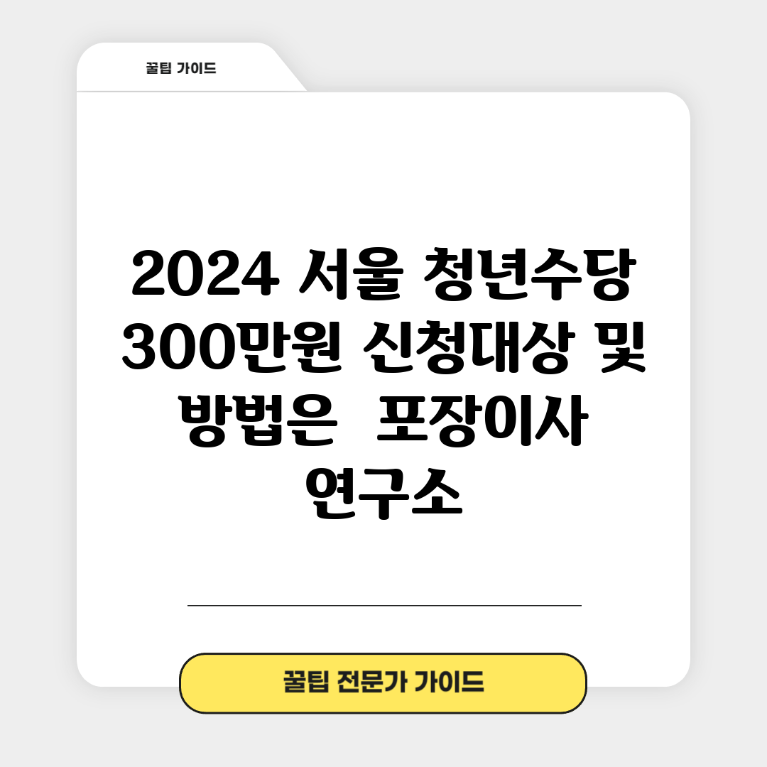 2024 서울 청년수당 300만원 신청대상 및 방법은 포장이사 연구소