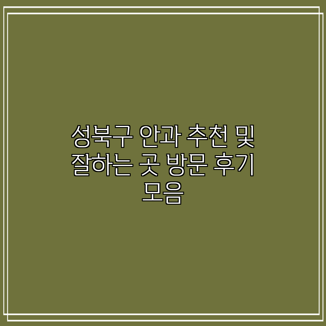 성북구 안과 추천 및 잘하는 곳 방문 후기를 통해 다양한 치료 사례를 확인해 보세요. 이 가이드의 핵심 목표는 효과적인 안과 치료와 환자 후기를 바탕으로 궁금한 정보를 제공하는 것입니다.