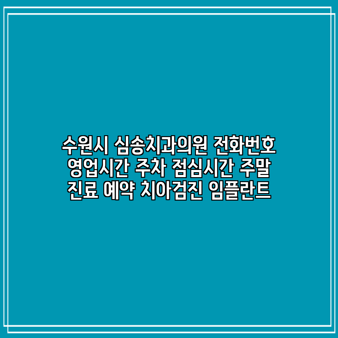 💡 수원시 심송치과의 진료 서비스와 예약 방법을 알아보세요. 💡