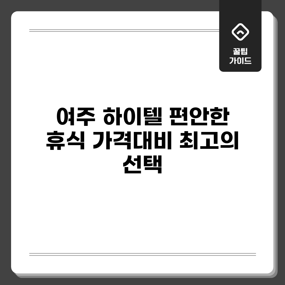 여주 하이텔은 편안한 휴식과 가격 대비 뛰어난 가치를 제공합니다. 아래의 단계별 가이드를 통해 여주 하이텔에서 최고의 선택을 하는 방법을 알아보세요.