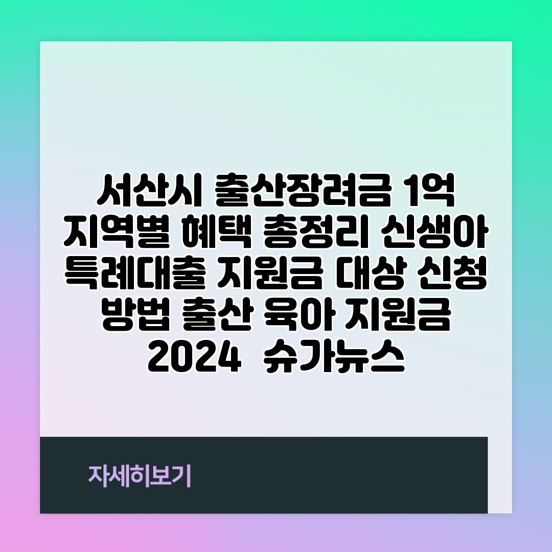 서산시 출산장려금 1억 지역별 혜택 총정리 신생아 특례대출 지원금 대상 신청 방법 출산 육아 지원금 2024 슈가뉴스