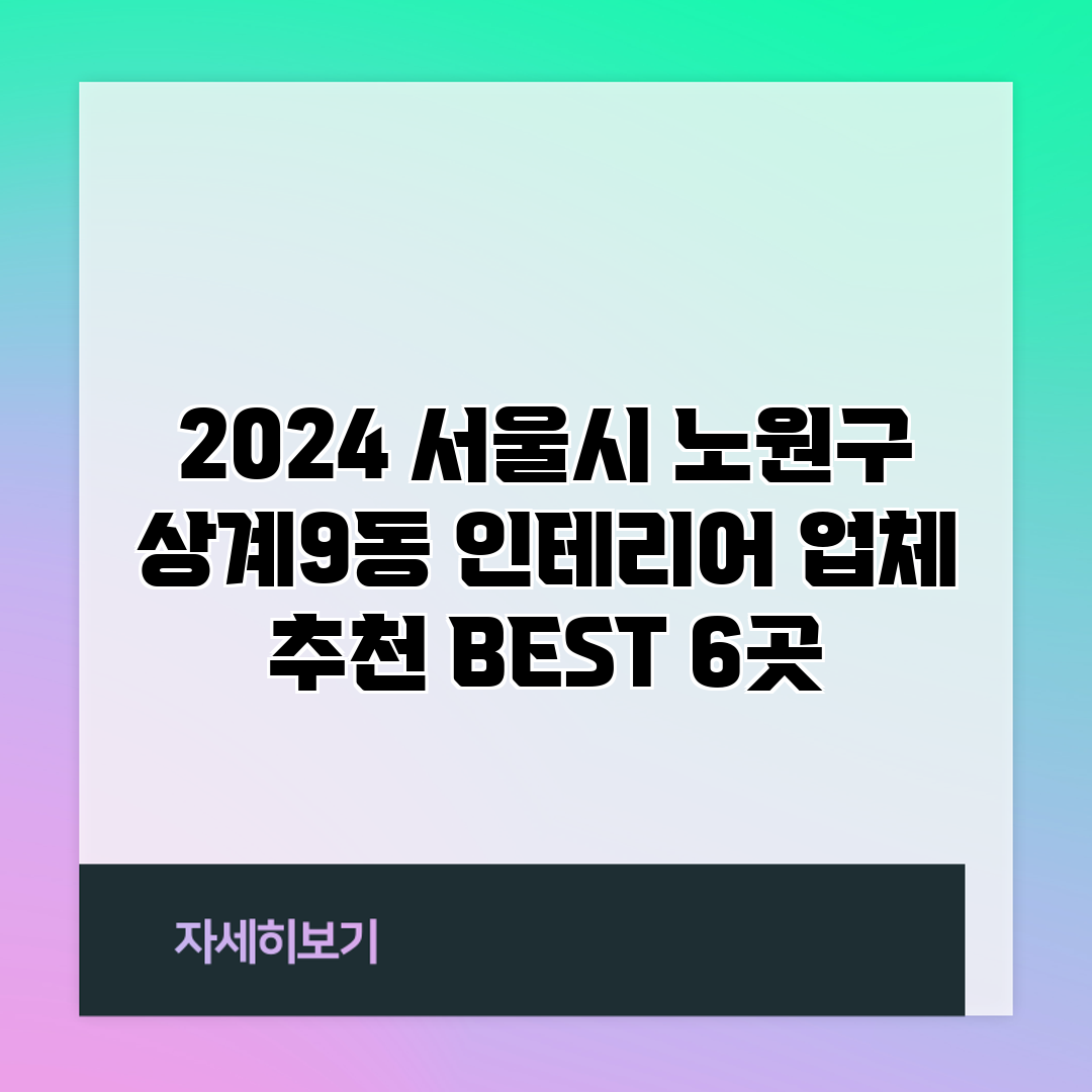 2024 서울시 노원구 상계9동 인테리어 업체 추천 BEST 6곳
